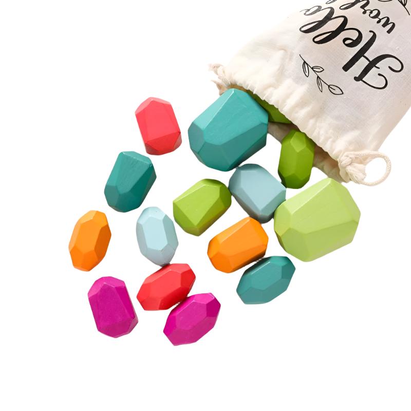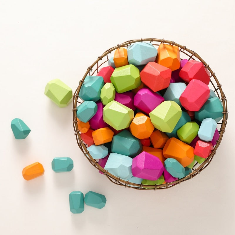 Wooden Rainbow Stones Building Blocks